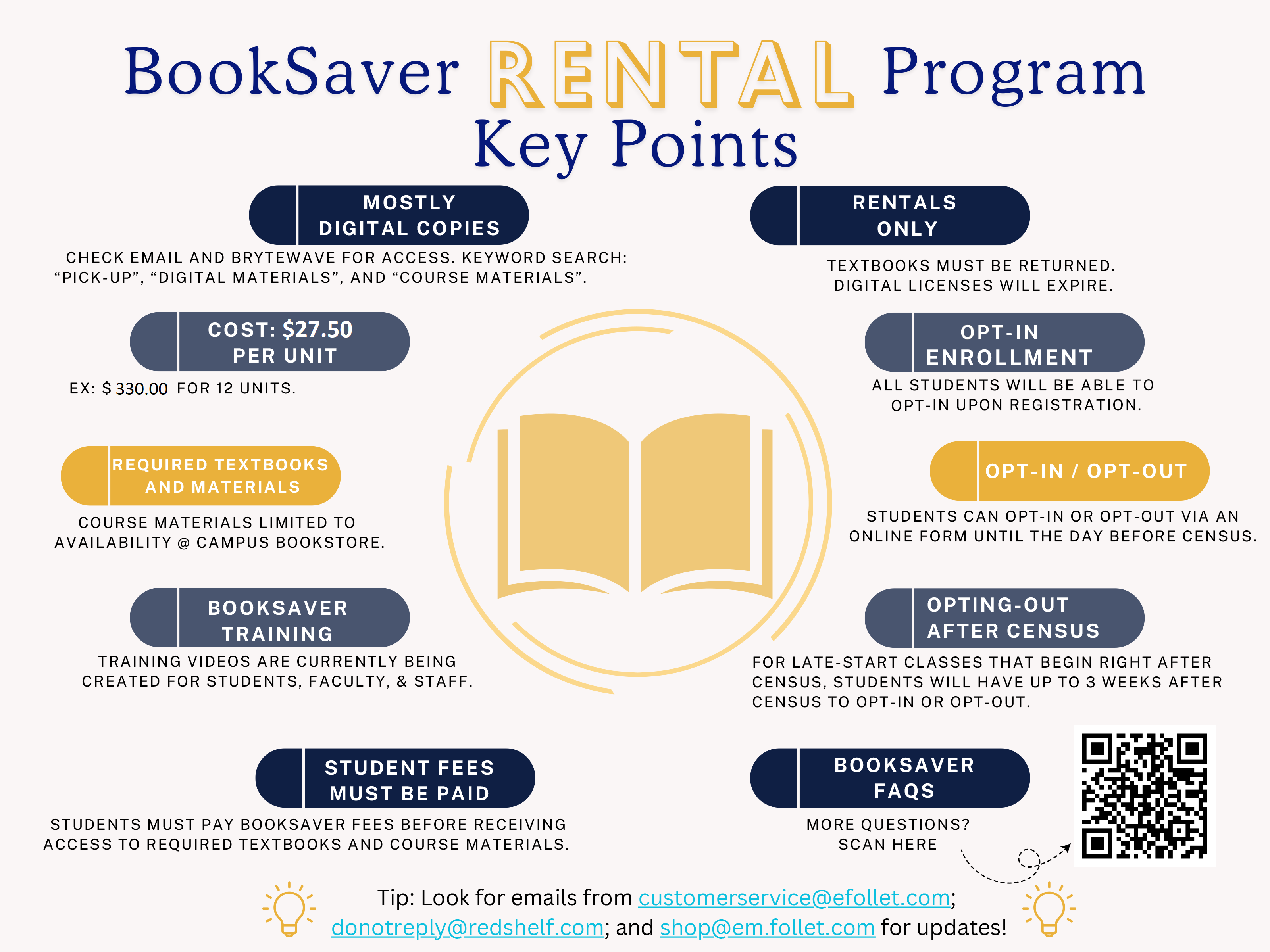 Seeing Charges and Credits: You might see a "BookSaver" charge on your student account at first. Don't worry—this will be taken care of later. The Student Fees office will use the money from EOPS or other programs to pay this charge. If your textbooks cost more than what you get, you'll need to pay the difference.